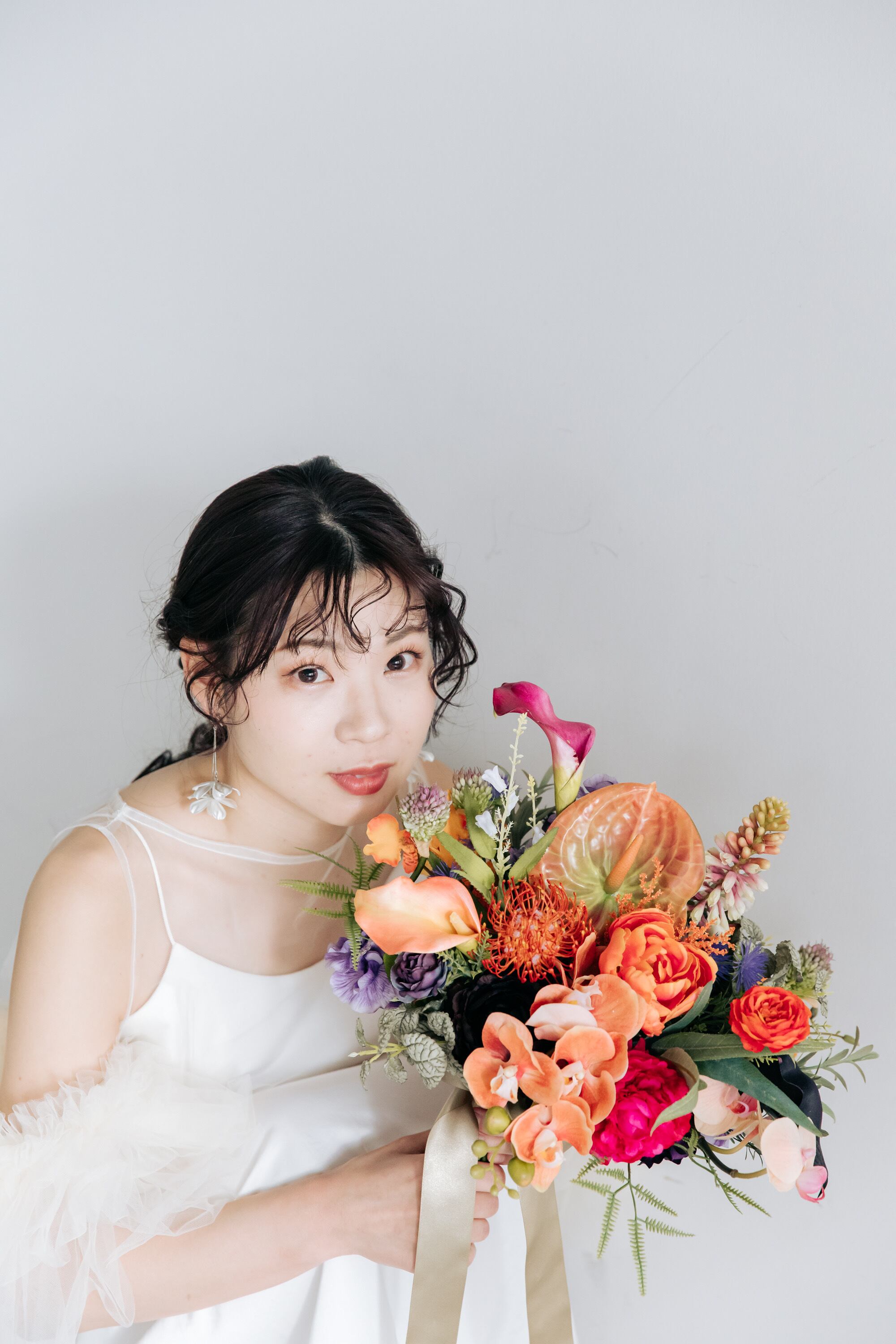 ポニーテールやシニヨン等のアップスタイルがにおすすめです。